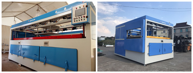 2.    ACF系列大高速吸塑機(jī)。是市場上使用吸塑機(jī)型號(hào),在自動(dòng)化程度、產(chǎn)量、人工使用量、機(jī)器價(jià)格親民,較為容易接受的吸塑機(jī)設(shè)備。工藝步驟:卷材自動(dòng)拉料、加熱、真空吸塑、整版裁切、裁斷機(jī)分切。