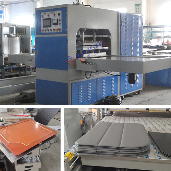 4.      門板熱合機的模具一般為一個上模、二個下模,交替工作,機器的產量大約為3500-4500/8小時。用戶也可以根據產量來選擇效率更高的多工位自動轉盤式高周波機械。
