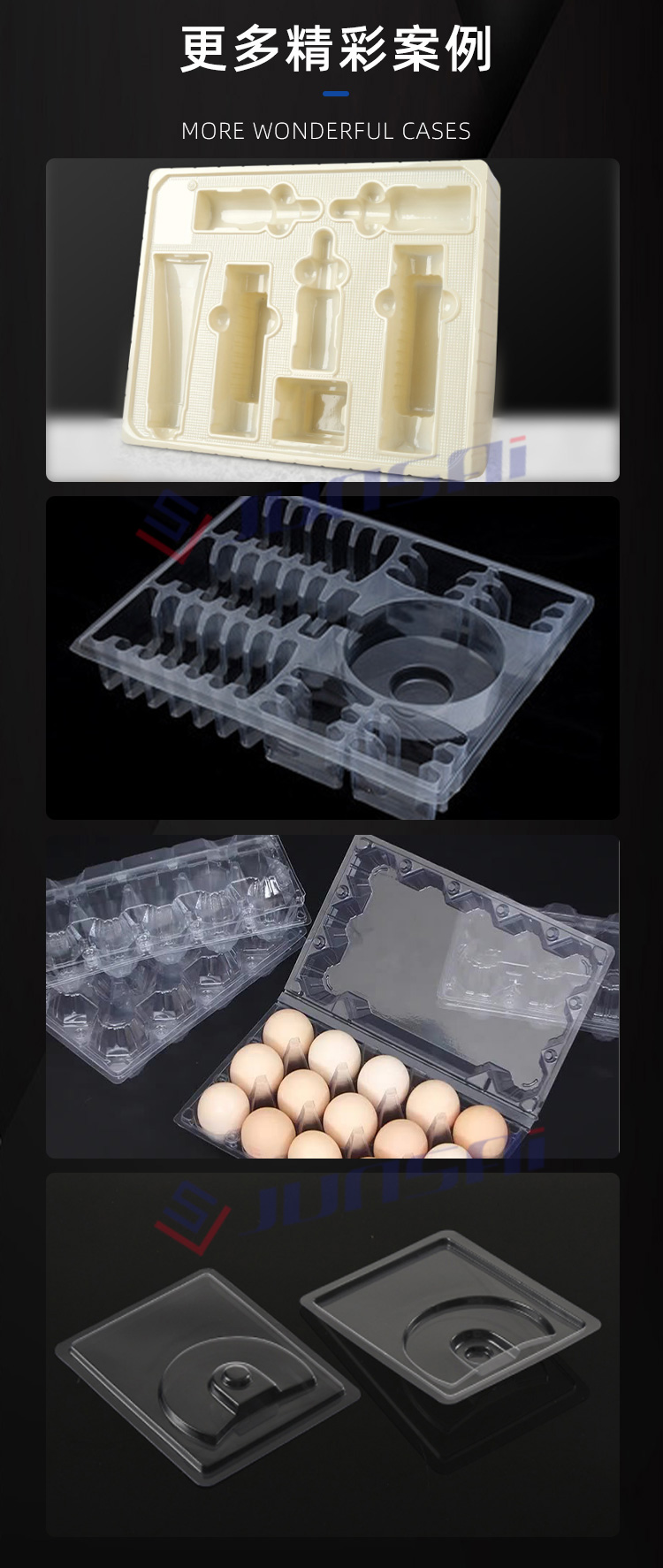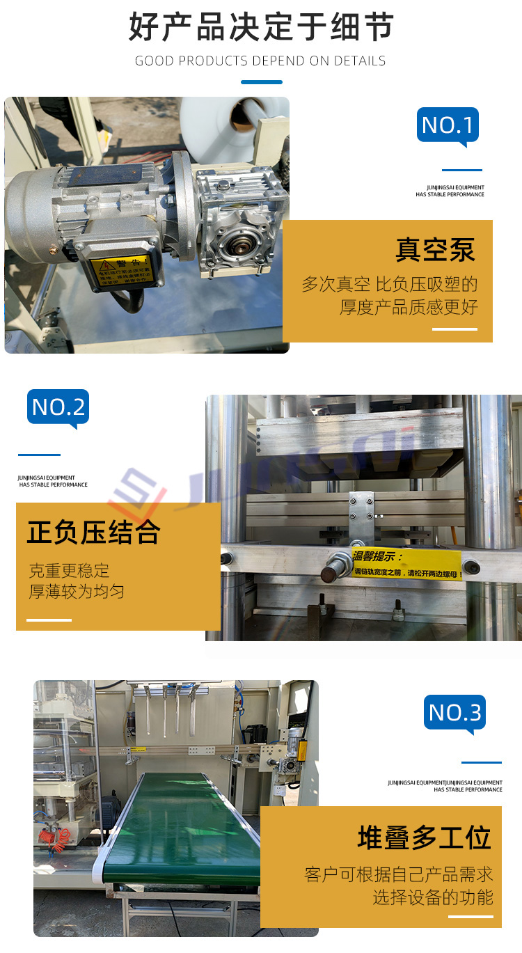 這臺全自動正負壓吸塑機適用于PS、PVC、PET、PP等塑料原材的成形,可以用來生產(chǎn)各種盒、碟、碗、電子托盤、杯蓋等塑料容器和包裝產(chǎn)品,如市面上常見的水果盒、糕點盒、保鮮盒、電子中轉(zhuǎn)托盤、玩具包裝等。