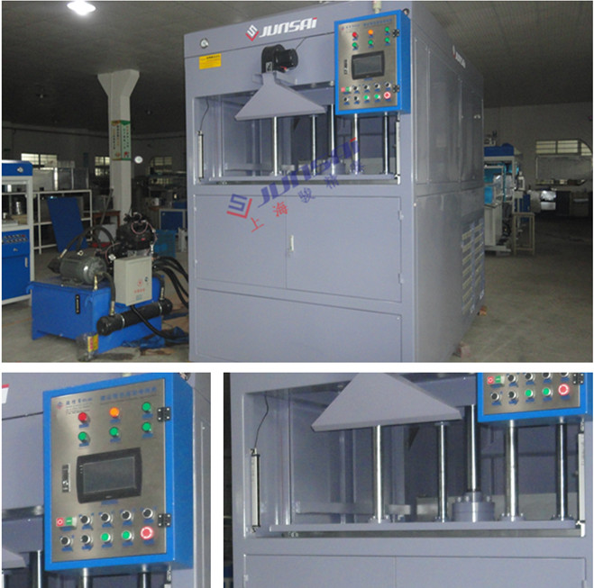 4.1成型部分由密封氣箱,壓片框,上模組件,下模組件組成,成型中下模采用真空成型,下模采用液壓式升降并配有平衡同步器功能使模架運行更平穩。